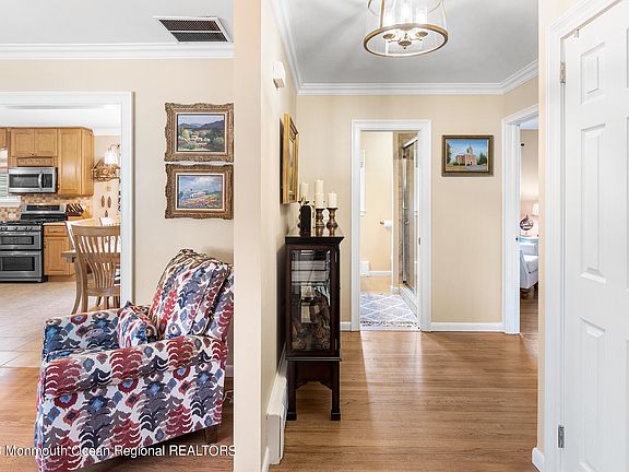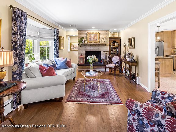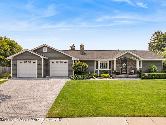 Meticulous expanded ranch, beautifully landscaped, with tons of curb appeal in desirable Oceanport! Nothing to do in this recently updated 4 bedroom, 3 full bathroom home with finished lower level featuring a walk-up to the resort-like backyard. Enter this light and bright home with hardwood floors to the large living room with woodburning fireplace, a truly custom kitchen with tons of cabinets, granite countertops, center island with pendant lighting, stainless appliances, and a pantry. The master suite with private bathroom and walk-in closet, a finished laundry room with cabinetry, an additional 2 spacious bedrooms and a main bathroom. Direct entry from the oversized 2-car garage. The finished lower level offers additional living space with natural light featuring a den with surround surround sound, a bedroom, full bathroom and storage room. Fenced-in yard with an outdoor kitchen, fire pit and multiple sitting areas. Easy maintenance with a multi-zone sprinkler system, paver driveway, paths and patios, tankless HWH, custom window treatments, outdoor sheds and so much more! Conveniently located to major roadways, local train station, shopping, restaurants, Red Bank, beaches, parks, Seastreak Ferry.