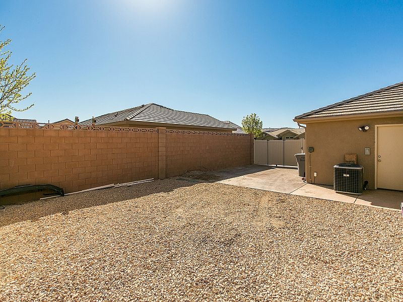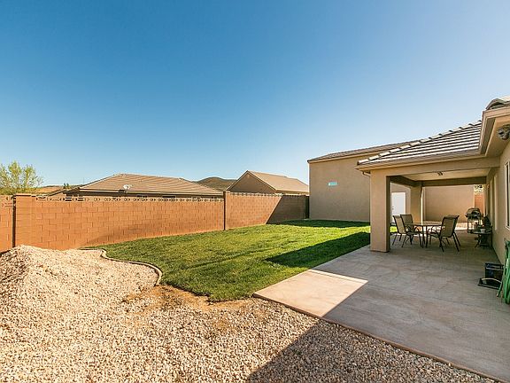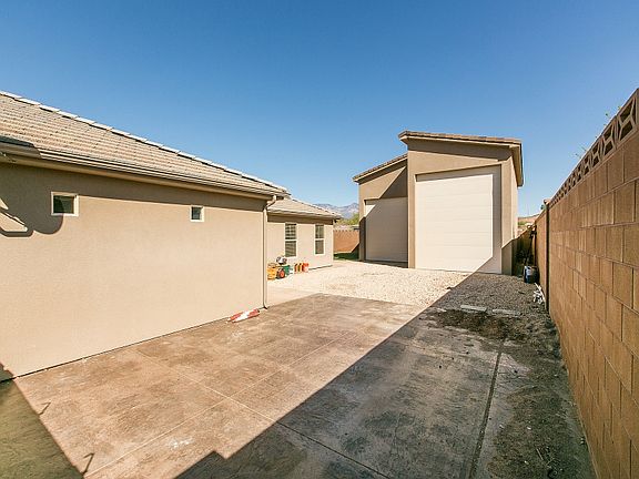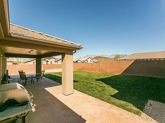 Incredible value! 6-car garage- 3 car attached garage w/ epoxy floor PLUS a detached RV garage 16' ceiling: Bay #1 37' deep has 12'wide by 14' tall door and Bay #2 27' deep has 12'x12' door. Detached RV garage has 220 plus multiple 110 outlets and to top it off it's built with 2x6 construction and insulated walls! Aside from the garage space there is an additional RV pad on the side of the garage. Yard is fully landscaped w/ block walls and gates, sprinkler system, drip system and large covered patio. Home has a split floor plan, granite counter tops, large closets in all the bedrooms, tons of storage closets, large pantry, very nice walk-in tiled shower in the master bathroom, stainless steel appliances (fridge included), full rain gutters, great view of Pine Valley Mountain off of back patio, south facing home, corner lot, good privacy, no monthly HOA fees, very close to grocery stores and restaurants. Don't pass this opportunity up!