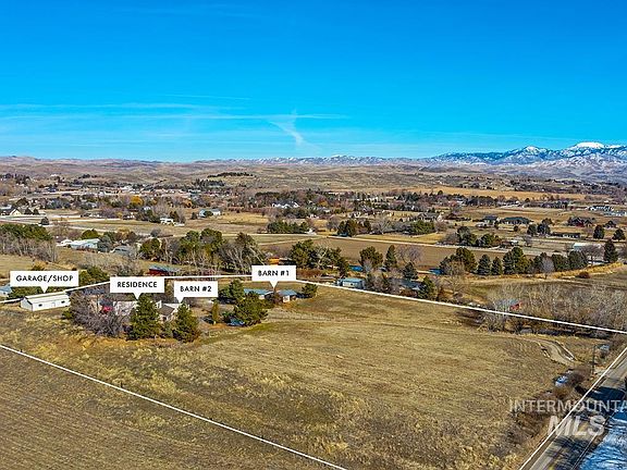 A slice of Idaho awaits! Almost 8 acres on an Eagle homestead that serves as a reminder of the treasure valley's agricultural history. This special property holds a strong heritage, having been lovingly owned and maintained by the same family since 1987. Flowing farmland and the pastoral bliss of open air give the feeling of complete serenity, while its close-in Eagle location removes any feeling of isolation. Multiple grazing pastures and barns support future farming and equestrian activities while substantial garden plots and fruit trees invite the opportunity for true farm-to-table living! The existing MCM shed-style home is a fresh canvas realize your modern design, featuring brand new carpet, LVP flooring, and paint throughout with strong architectural character that has been thoughtfully preserved. The spacious floorplan offers an abundance of gathering areas for entertaining, while 5 bedrooms provide plenty of private spaces to retreat to.