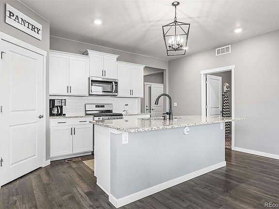Fantastic Ranch home, like new with finished basement and upgrades throughout! This home is truly turnkey ready and welcomes you in with luxury flooring leading from the entryway into the open great room with custom paint, gas fireplace, separate dining area with custom lighting fixtures and plenty of natural light streaming in. This functional open floorplan is perfect for entertaining, with everything flowing together in once space. The great room opens to the spacious kitchen with large center island, granite counters, walk-in pantry, subway tile backsplash, high end cabinets and newer SS appliances, all included! Just off the great room is the relaxing primary suite with walk-in closet and private bathroom. The main floor living space continues with a full bathroom and two great sized bedrooms, both with walk-in closets. Bring the entertainment to the professionally finished basement with a large Rec Room that’s a perfect setup for additional family room, or game room. You also have an additional bedroom and full bathroom giving you a great setup for guests! Enjoy being located on a corer lot with nobody behind you or to the side for additional privacy. Head out to your backyard with the oversized stamped concrete patio for outdoor fun and to take in the serene setting. Located in a great community, you have access to several neighborhood parks, trails, walking paths and just a short drive to Windsor Reservoir. Located near major routes for convenient commuting to Ft Collins, and Loveland for tons of shopping, dining and entertainment options. Don’t miss out on your chance to make this beautiful home yours!