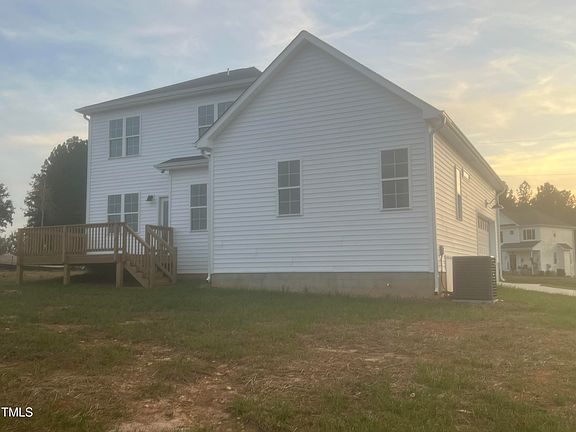 Great location!! Approx. 30 min or less from Raleigh, Wilson and Rocky Mt. Check out The Tina Plan with 2 car Garage on a large lot. Custom Features includes, LVT Flooring in Main Living areas and Kitchen and baths. Granite Countertops in Kitchen. Large Rear Deck and Nice front porch to sit on and watch the wildlife. Builder offers a 2-10 Home Buyers Warranty.