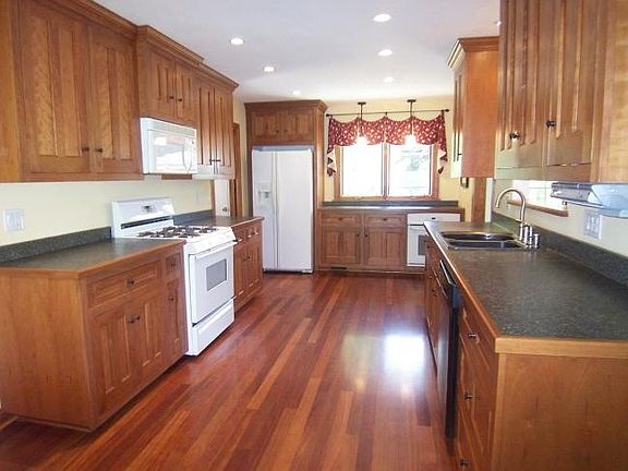 Move right into this beautifully updated 3 bedroom, 2 bath Brookfield home. Newly remodeled kitchen features cherry cabinets, 2 ovens, built in china cabinet and gleaming brazilian cherry wood floors. Flooring continues through the sunny living room with crown molding. Spacious family room with natural fireplace and glass doors overlook back yard and patio. Private master bath and second bath both completely updated. Maintenance free exterior brick, new roof, gutters, soffits, fascia and garage door.