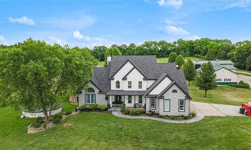 Don’t forget about THE HOUSE! Immerse yourself in the majestic ambiance of the living room, highlighted by an awe-inspiring two-story fireplace and windows, tasteful built-ins, and vaulted ceilings that elevate the sense of grandeur. The kitchen has been artfully remodeled, with granite countertops and a large center island. There are 3 spots for laundry - in the pantry, the mud-room off the garage, or in the closest Morton building! Each of the oversized bedrooms boasts expansive walk-in closets. The MAIN-FLOOR MASTER suite feels like a home in itself, with tall windows, vaulted ceilings, walk-in closet, newly tiled shower and soaking tub. Step into the finished walk-out basement that has a full bath, plenty of storage and the potential for a fifth non-conforming bedroom. NEW HVAC, newly painted, newer roof. It’s not often a property comes along with everything this one has to offer.