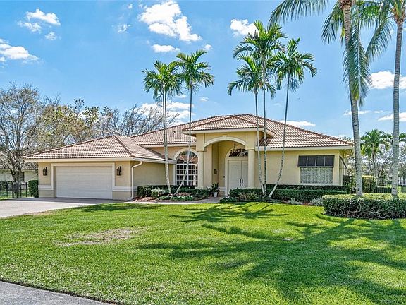 Presenting this stunning, spacious 4 bedroom 3 full bathrooms in the heart of Davie on a acre of land. This home has been beautifully taken care of with the original owners. This home has amazing features such as a large open style floor plan overlooking the patio and pool with lush landscaping. The kitchen has granite counter tops. 2 bathrooms have been beautifully update. Tall 12ft. volume ceilings, triple split plan, custom closets. Impact windows and doors, expect for the front window and door but has storm protection. Oversized garage with custom built-ins, work bench with rafters. Gorgeous lake view. One of the best lots on the block. This home is a must see!