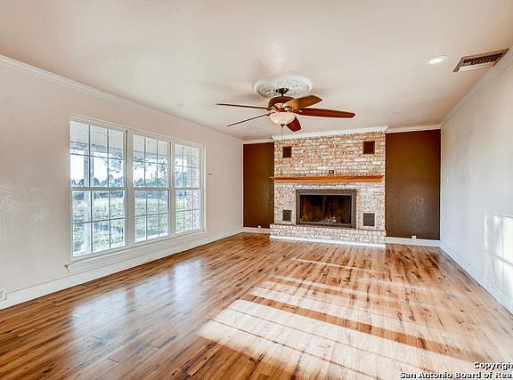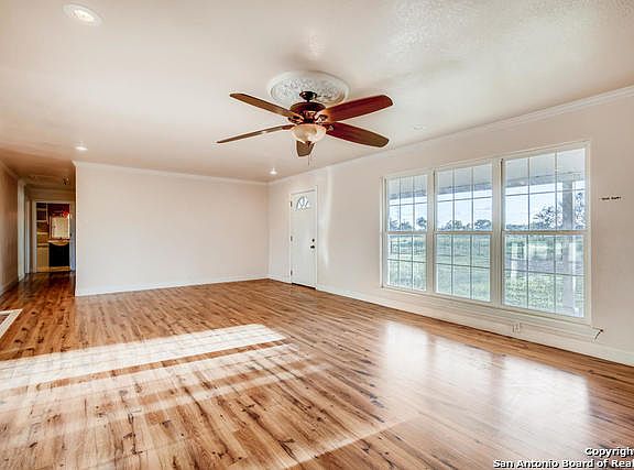 So much potential here on 6.634 acres open unless possibilities. Property is already cross fenced if looking for a place for livestock, farm or to even do both. Property offers couple of storage buildings & has easy access to 1604. Home is a one story ranch style home w/ wood laminate flooring & ceramic tile. Enjoy large utility room w/ oversized pantry. Rooms are spacious for different furniture arrangements & master has walk-in closet. Some TLC for paint & cabinets. Priced to sell under market value!!