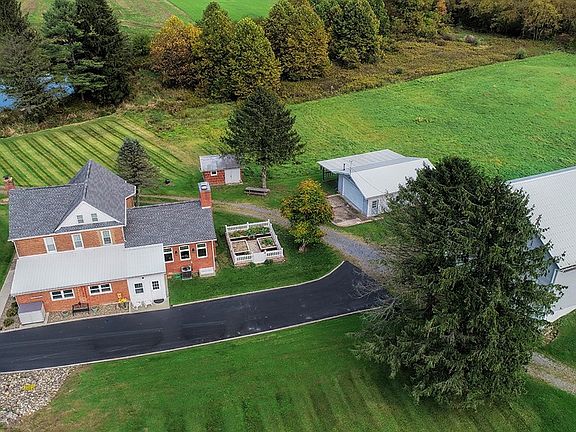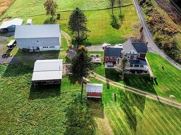 Exceptional 105 Acre Farm four miles from Lake Raystown. 1921 Brick Farmhouse Renovated in 2018, 3 BR & 2 Bath. Solid Hickory Hrdwd. Floors, Chestnut and Ash Beams, Stone Fireplace w/Iceland Volcanic Firebox, Thomasville Maple Kitchen Cabinets with Quartz Countertops, Upscale Appliances, Fused Glass Backsplash and Hubbardton Lighting Fixtures, Thermopane Windows, Custom 500 g. German Oil Tank, 2016 Archt. Roof. Fenced, Raised Bed, Outside Garden. 11x14 Milkhouse turned Workshop. 23x31 Garage,1865 Barn (39x65) w/Hand Hewn Hickory, Electric, Water. 39x23 Horse Stable w/ Water, Electric. Chicken Coop. Gnome House Entrance with Beautiful Landscaping. Pond. Trailer/camper Lot with Separate Well and Septic. House is Generator Ready. Leaf Filter System. Potential Developement. Events?