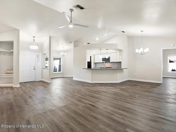 Beautifully updated Pool home in the heart of Spring Hill perfect for a family! 3 bedroom/ 2 bath/ 2 car garage home on a quarter acre lot with a pool and fenced yard that has plenty of room for backyard play. Walk into this serene, open, split plan home that's been well laid out for the modern family. Beautifully updated, but still retaining its character and comfort, you will fall in love immediately. Interior updates include new paint, vinyl plank flooring throughout, all wood kitchen cabinetry, granite countertops, and a new kitchen appliance suite. Exterior updates include new, energy efficient windows and sliding glass door, paint and brand new pool equipment.