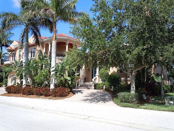 Amazing Mediterranean home within the upscale and highly desirable gated community of Harbour Landings Estates, just 3 minutes from bridge to Anna Maria Island. Boaters of all kinds can enjoy easy, close access to the Intercoastal Waterway, Tampa Bay and Gulf of Mexico right around the corner from the salt water canal. 80' deeded dock with 10,000 lb lift and water/electric. Views of canal and Palma Sola bay. 10' ceiling throughout with 12' tray ceilings in living/dining rooms. Home elevator from garage to 2 upper floors . Complete guest suite w/bedroom, living room, breakfast kitchen, bath, washer and dryer, and 3 balconies with custom wrought iron. 4 bedrooms (large master with walk-in closet, spa jetted tub, walk-in shower, his and her vanities), 3 bath, plus den. Large 18X40 storage room w/workshop. 3 door car+ garage with two car lifts for a total of 5 cars. PebbleTec swimming pool w/spa. 10' slidding doors to lanai w/tongue and groove cypress ceiling on lanai, second floor balcony, and front entry. Double entry leaded glass doors with sidelights. Very open plan for entertaining. Seamless glass for breakfast view. Marble, granite, tile, travertine, and wood. 10 ceiling fans. Exta wide crown moldings. Gas fireplace. Extra strong construction. 2X6 main floor wall construction, 2X8 second floor wall construction. Tile roof. Stucco exterior. 22.5 KW back up automatic emergency generator. Kitchen with walk in pantry and granite counter tops. Stainless appliances in main kitchen with breakfast bar for six. Three refrigerators total.