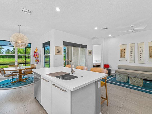 Elegant Ruby model features 2 bedrooms plus a den, 2 full baths and a private backyard with beautiful lake view. Upgrade highlights include impact windows, whole house generator, Bosch kitchen appliances with natural gas range, upgraded lighting and fixtures throughout, tons of LED hi hats, whole house gutters, epoxy garage floor, and so much more. Clubhouse features full service restaurant, tennis, pickle ball, 39,000 square foot clubhouse, indoor/outdoor bar and more.