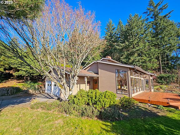 If you're looking for a spectacular view, this is it! Fabulous private lot on a hill bordering Lake Oswego. Custom one-owner home with soaring vaulted ceilings. Great room with handsome brick fireplace going up to the high ceiling. Tile throughout 1st level except the bedroom. Spacious deck looking out over the valley. One of a kind very special home.