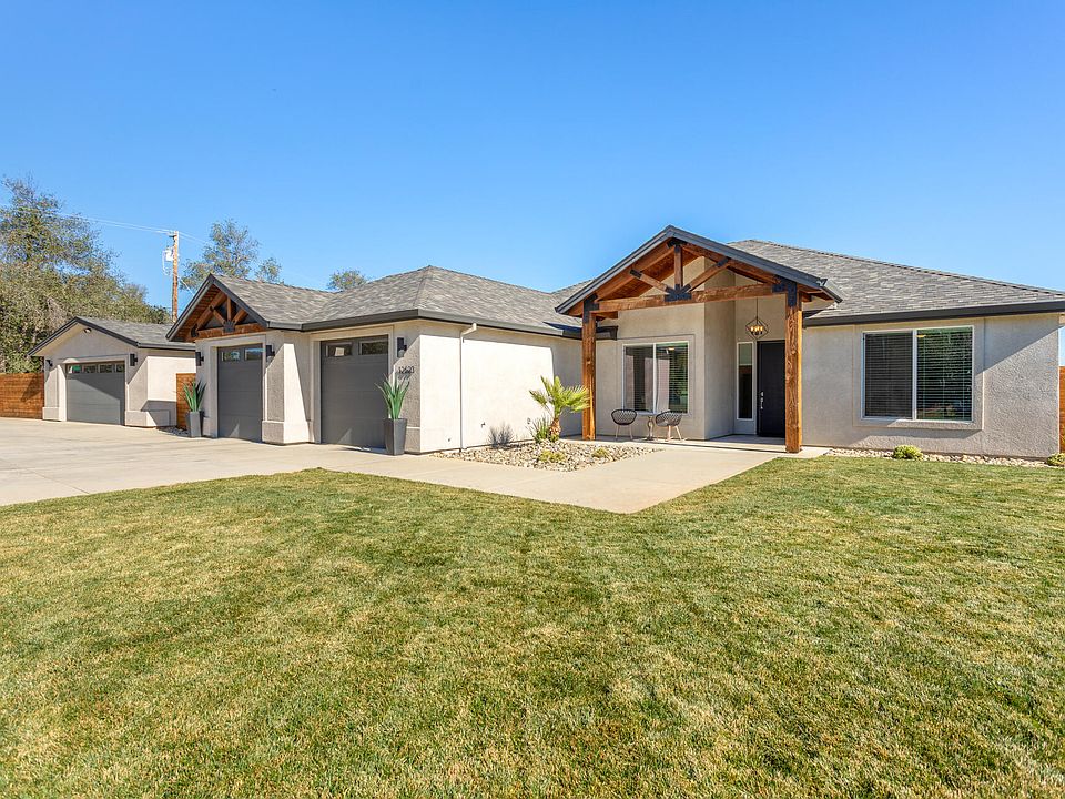 Beautiful custom home with views of the Lassen range. This stunning home features an open floorplan with a gourmet kitchen, custom cabinets, a separate office, gas fireplace in great room, LED lighting, and quartz counter tops. The outdoor amenities include a covered patio, great views, a pond, 24x32 shop, and RV hookups.
