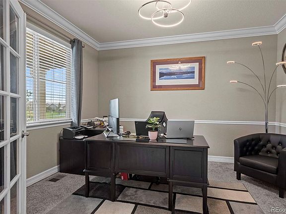 - Description: Bright Den With Crown Molding, Chair Rails, And French Doors