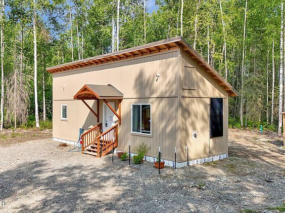 Newly Built Charming Ranch Home/Cabin on a cleared, level acre lot.Features an open living area with a U shaped kitchen, SS appliances, shaker cabinets, breakfast bar, futon bed, solid surface countertops, LVP flooring, well, sewer system, Wall Heater, 30V trailer plugin for RV, metal roof. Solar System back up, water heater & tank in crawlspace. Ideal starter home, Airbnb, Investment, RetreatThis inviting cabin includes Ashley Propane Wall Heater 25,000 BTU and AmeriGas (Leased) 250-gallon tank that works like a dream and an automatic solar power backup system (4K watts-24 volt) in case the MEA power goes out, metal Roof. Access to the fully insulated crawl space (500 sq ft) access via two hatches near the living room closet floor, with a ladder and a switch for the fan/light. Two sheds (10x16) provide ample storage, with one insulated. Well installed by E & D Wells of Wasilla (70' deep, 10 gallons per minute) Wired to house. Reverse osmosis system to be installed under kitchen sink (to filter out iron from drinking water) The 1-acre lot with four fruit trees, red flowering bushes in front of the living room window, birch and aspen trees. Ideal for long-term living or a recreational getaway, with nearby lakes, trails, and outdoor activities. Just 30 minutes from Talkeetna and 1 hour 20 minutes from Anchorage. Neighbors are very helpful and work together year-round to look after the property.
