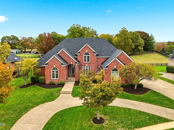 Welcome to this stately home in the sought-after Hillcrest neighborhood. Perfectly positioned directly across from the community pool and clubhouse, this residence backs up to a picturesque horse farm offering breathtaking views. A circular driveway leads to a grand entry with soaring ceilings and a striking staircase. The formal dining room connects seamlessly to the great room, which features a fireplace and built-in shelving—ideal for both everyday living and entertaining. The kitchen is warm and inviting, with a spacious eat-in area, center island, essential appliances, and a pantry closet. A built-in desk or prep station adds functionality, while large windows bathe the space in natural light. Just off the kitchen, a screened-in porch provides the perfect setting for morning coffee or evening relaxation, overlooking tranquil surroundings. The first-floor primary suite serves as a private retreattucked away on the main leveland features a spa-like ensuite bath with a dual-sink vanity, walk-in closet, and direct access to the freshly painted deck and gazebo. A flexible sitting room or office with built-in bookshelves adds versatility, while a convenient laundry room and half bath complete the main level for everyday ease. Upstairs, both the front staircase and the secondary staircase near the kitchen lead to three additional bedrooms. One includes a private ensuite bath, while two share a Jack-and-Jill bathroom, each offering generous closet space. The walkout lower level extends the living space an entertainer's dream featuring a spacious family room with a gas fireplace, full bar, theater room, and an additional office perfect for work or study. A bedroom, full bathroom, home gym, half bath, and ample storage complete this impressive level. Outside you can enjoy a covered patio overlooking the expansive backyard, complete with a firepit area and basketball courtall framed by serene horse-farm views. Residents of Hillcrest have access to wonderful amenities including a clubhouse, pool, tennis courts, and community events. Ideally located in the heart of Prospect, this home offers quick access to award-winning Oldham County schools, nearby parks, golf courses, shopping, and dining. With Highway 42 and I-265 just minutes away, commuting to downtown Louisville and surrounding areas is effortless.