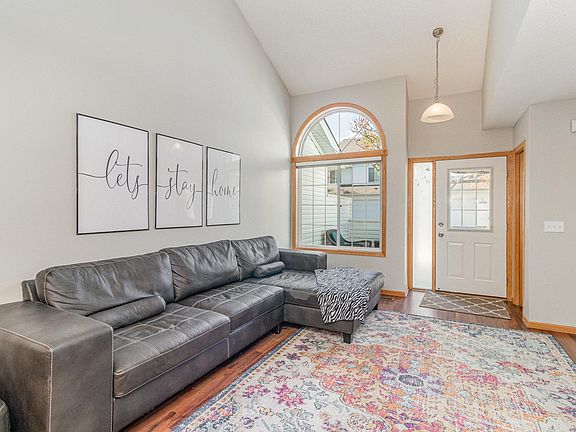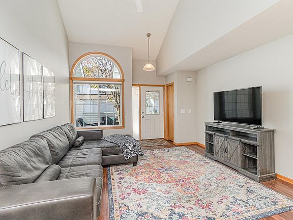 This well-maintained townhome offers 2 spacious bedrooms on the upper level, 2 bathrooms, and a finished 2-car attached garage. The private 12' x 10' front patio welcomes you into the airy living room, complete with vaulted ceilings, a large ceiling fan, and a bright arched transom window. The loft overlooks the living space and features a skylight, flooding the area with natural light. The semi-open main level includes a living room, informal dining area, and a roomy kitchen with a breakfast bar, updated range (2024), dishwasher (2024), and fridge (2022). The kitchen provides ample storage, including large under-stair storage, and access to the garage. A half bath with a utility closet rounds out the main floor. Upstairs, the primary bedroom easily accommodates a king-size bed and offers a huge walk-in closet (7.2x9.10). The full bath features a dual sink vanity, plus there's a convenient hallway linen closet. Located in desirable St. Michael, near parks, schools, shopping, and with easy freeway access.