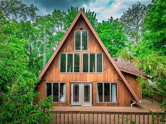 Discover this one of a kind A-frame residence nestled in a serene countryside setting! Boasting expansive acreage, this home is complemented by a spacious 2+ car garage/pole barn, offering both practicality and versatility. Embrace the vast yard, ideal for a plethora of outdoor activities or envision your dream additions to this expansive canvas. Don't miss the adorable chicken coop that is already set up waiting to be filled with eggs this coming summer. Step inside to discover not one, but two balconies adorning each side of the home, providing idyllic spaces for hosting gatherings or simply relishing in the tranquility of nature. Seamlessly blending functionality with style, the master bedroom is conveniently situated on the main floor, ensuring ease of access and comfort. Once you ascend to the upper level you will uncover a second bedroom. While in the third bedroom an additional loft space is present, perfect for transforming into a cozy sleeping quarters or a relaxing lounge area. Adding to its allure, this residence features a generously-sized walk-out basement brimming with potential, offering the opportunity to customize the space to suit your preferences, whether it be for additional living areas or storage needs. Country living combined with the allure of architectural innovation, making this A-frame haven an unparalleled gem waiting to be discovered.