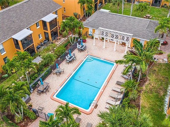 This South Fort Myers charmer is conveniently located near Bell Tower in a beautifully landscaped community with easy access to sunny, SW Floridas gorgeous beaches, lots of shopping and dining, and the airport and interstates. This 1st floor 2 bed, 2 bath unit has been completely remodeled including a new kitchen, all LVP flooring and tile, granite countertops, brand new HVAC and water heater, freshly painted, and 5 inch baseboards added throughout! Get out of the cold and into the heated pool which was just resurfaced in 2023 or soak in the warmth from the serene gazebo while cooking out on the community grills. You'll also enjoy the gorgeous courtyard views from your screened lanai surrounded by lush landscaping providing a private oasis, a split bedroom floor plan, spacious living room, and laundry hook up inside the unit....this one checks all the boxes! For further peace of mind, the buildings all had new roofs added in 2023 with the additional hurricane strap and current wind mitigation inspections available and the community resides in flood zone X so no lender required flood policy needed!