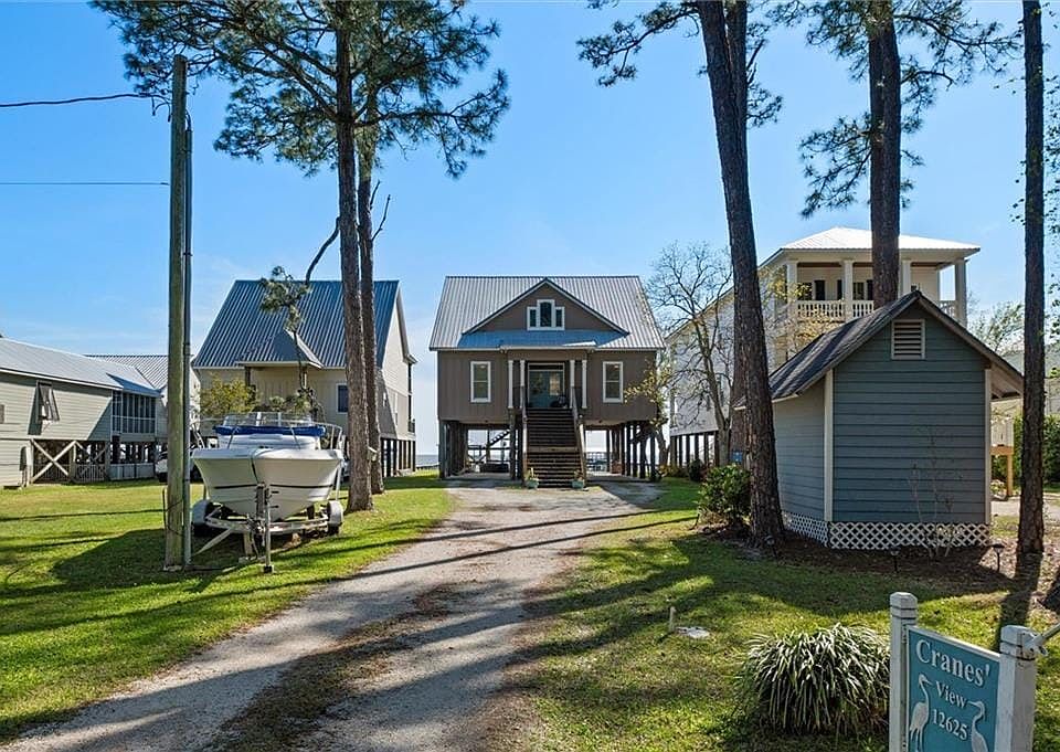 Experience breathtaking sunsets and the beauty of Mobile Bay from this stunning custom-built home. This well-kept, spacious residence features 5 bedrooms and 5 baths, with tall ceilings that enhance its open and airy feel. Designed for comfortable living, the layout includes 3 bedrooms downstairs and 2 upstairs, providing ample space for family and guests.The heart of the home is the family room with a cozy fireplace, perfect for relaxing evenings. A new HVAC system (installed 5 years ago) ensures year-round comfort. Storage is abundant, including plenty of attic space for all your needs.Outdoor enthusiasts will love the pier with two boat lifts and an outdoor shower, ideal for fishing, boating, and kayaking. Plus, there's water access under the house for an additional outside shower. With 4-car covered parking underneath, there's plenty of room for vehicles and gear.Enjoy the rare beauty of jubilees, fishing, and waterfront living right from your backyard. This is a rare opportunity to own a piece of paradise on Mobile Bay! Buyer to verify all information during due diligence. 2025-08-04
