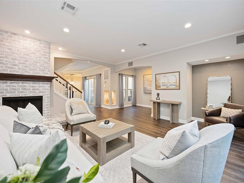 Welcome to this beautifully updated 3-bedroom, 2.5-bath townhome in Somerset Place, a gated community in Memorial. Landscaped grounds, peaceful courtyards, and outdoor sitting areas create a welcoming setting. Inside, fresh paint, crown molding, and luxury vinyl plank floors enhance the open layout. The remodeled kitchen features quartz countertops, slate backsplash, custom cabinetry, and a walk-in pantry. Recent updates include double-pane windows and doors, upgraded HVAC and electrical, refinished patio, and new water heater. Upstairs, all bedrooms have large walk-in closets and ceiling fans. Secondary bedrooms were expanded with enclosed patios, creating flexible retreats for offices, playrooms, or sitting areas. The spacious primary suite is light-filled and inviting. This move-in ready home offers an oversized two-car garage and a prime location near CityCentre, Memorial City Mall, Bendwood Park, and top-rated Spring Branch ISD schools. Schedule your showing today!