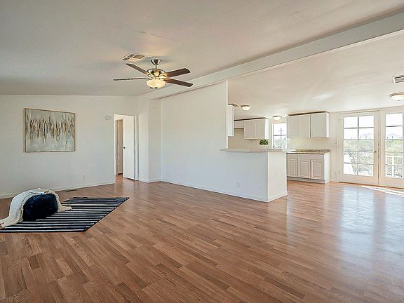 Bright and open floor plan with 4 Bed/2 Bath, 1,904 sq ft of play space for relaxing on .93 acres. Almost everything has been updated in this house. Brand new features include: Roof, interior/exterior paint, laminate flooring throughout, kitchen cabinets, counters, hood, bathroom vanities, tile shower enclosure w/ rainfall shower feature, bath tubs, toilets, lighting fixtures, ceiling fans, exterior skirting & more! Wood burning fireplace in den/bonus room, French doors, high ceilings, newer gas stove/oven. Beautiful sunrise & sunset views. New water heater will be installed before closing. New air conditioning system will be installed before closing with acceptable contract.