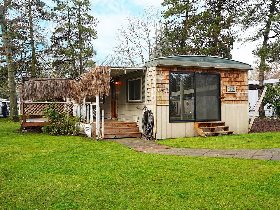 BACK ON MARKET - NO FAULT OF HOME. LARGE PRICE DROP! Location, location, location!!! Top quality Marlette huge single-wide on GIGANTIC approx 7300 sq ft rented lot. Space rent includes sprinkler watering and mowing of the lawn & blowing of leaves. Beautiful lawned and landscaped corner lot with trees makes looking out the windows or sitting on the HUGE 21x14 covered deck peaceful and relaxing. The previous owner had a living room set up on the covered deck. RARE side-by-side parking for 3 cars!!! Huge home with double-paned vinyl windows, new laminate hardwood flooring and fresh interior paint. New approx $4,000 plumbing! GREAT FLOOR PLAN! TWO primary bedroom sized bedrooms. One has a slider, large windows, attached bathroom and closet. The other has a huge closet, laminate hardwood flooring and a beautiful bay window. Large light & bright living room. Spacious kitchen with lots of cabinets, eating bar, dishwasher and refrigerator and range that stay. Utility room has cabinets and the washer/dryer stay. LARGE shed and carport. Living in highly desirable Hayden Island Park is a lifestyle - river front walking/jogging paths, incredible view of Mt Hood & Mt St Helens, 4 heated swimming pools, gym/weight room, foosball, pool, yard care, huge lots, security, party rooms, recreation facilities, community games and more! You must see this home, setting and park to truly appreciate!