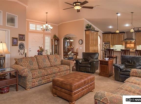 Prime South Suburban Reno location in the desirable Wolf Run community! Entertaining is a dream with the large private front courtyard, open great room floor plan and the over-sized double decks, which connect the interior living space directly to the comfort, views and seclusion of the outdoors. Interior and exterior space is open, clean, bright and upgraded! Two large exterior buildings (not included in sq ft) are PERFECT for a work shop, craft room, or gardening hide-away! Full service RV amenities!