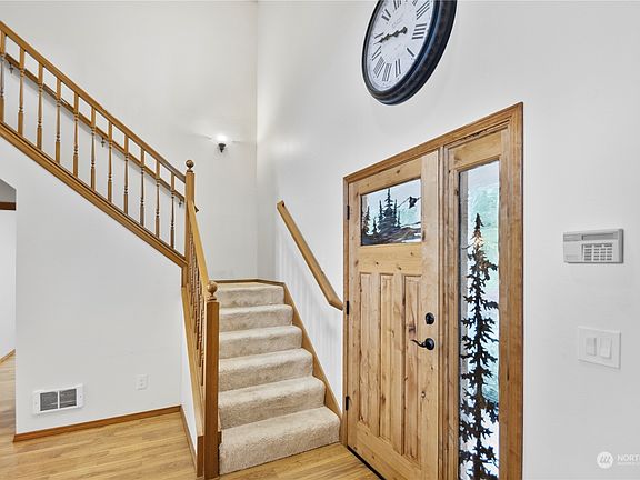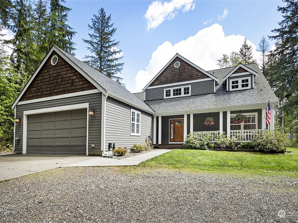 SHOP LOVER's DREAM! Nestled at the end of a serene road, this expansive 5.25-acre property features a 30x60 ft shop, heated & air-conditioned for comfort year-round. Complete with wood-burning stove, carport, & sturdy concrete floors, it's ideal for hobbies or vehicle storage. A wood storage shed & a 14x24x14H ft RV carport are also included. Retreat to the spacious 2178 sq ft home with vaulted ceilings, 3 bedrooms, 2 bathrooms, & a stylish kitchen with granite countertops. The luxurious primary suite offers a loft area for relaxation or work. Outside, discover level grounds for gardening, wooded areas for shade, & ample space for outdoor activities. Conveniently close to amenities, less than 5 miles from Arlington. Use WAZE for directions.
