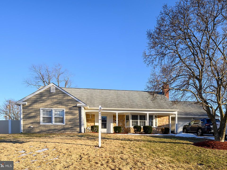 This spacious Levitt "Country Clubber" Colonial, the largest model built in 1962, has been beautifully renovated to offer modern comfort and style. With five bedrooms and three bathrooms, this home provides ample space for family living. The main level features luxury vinyl flooring throughout the living areas and includes a primary bedroom with an en-suite bathroom and walk-in shower, as well as an additional bedroom. A huge sunroom/rec room adds to the living space, perfect for relaxation or entertaining. The separate laundry room adds convenience. Upstairs, you'll find three additional bedrooms and a full bathroom. The unfinished attic offers abundant storage options. A hidden office is tucked away in a separate bump-out from the oversized two-car garage. The huge 0.40-acre lot includes a fully fenced backyard with a white privacy fence, providing plenty of space for outdoor activities. This home combines classic Levitt design with thoughtful updates, making it the ideal place to call home.