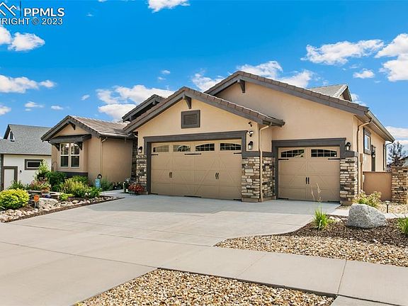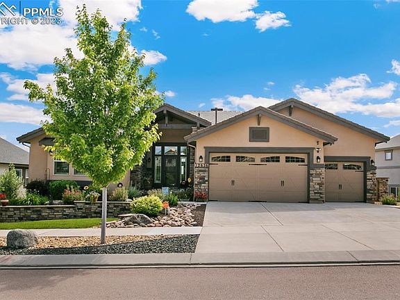 Welcome to this beautiful home offering a harmonious blend of comfort, elegance, and modern warmth, providing a Colorado Country Club living experience. Located in the desirable Flying Horse Sub, this property benefits from its prime location within a well-established and friendly neighborhood. As you step inside, the spacious living room features large windows that flood the space with natural lighting and an immaculate view of Pikes Peak. The kitchen is a culinary enthusiast's dream. It boasts ample cabinet space, and a center island that provides additional prep area! The main level of the home also includes a formal dining room, perfect for hosting memorable dinner parties, as well as a comfortable family room with a fireplace, where you can relax in the company of guests and family. Main level also features a master suite, offering a private oasis to escape the demands of everyday life. The master bedroom features a walk-in closet and the attached master bath boasts a luxurious soaking tub, a separate shower, and double vanity. The 2nd Bedroom on main level is also a perfect office space. Not only does this home have a stunning master bedroom, it also has a junior master suite. Additional well-appointed bedrooms and 2 ensuite full bathrooms complete the lower level for family members or guests. The backyard is a haven for relaxation and entertainment, featuring a spacious patio on the lower level walk-out with a built-in fire pit for soaking in the views. The fully landscaped yard is beautiful and spacious, filled with many of the popular Colorado perennials, trees and a lush green lawn offering plenty of space for outdoor entertaining and stunning views of the Air Force Academy and Pikes Peak. Conveniently located within walking distance from The Club at Flying Horse, don't miss the opportunity to make this exceptional property your own and experience the joys of Colorado Springs living at its finest.