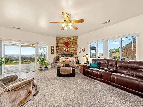 Discover the ultimate retreat with this one-of-a-kind property that offers panoramic views, including San Vicente lake, the ocean, and La Jolla, combined with the convenience of being just a short distance from the city. The gated entrance ensures complete privacy, while the open floor plan and spacious bedrooms create a welcoming environment. The updated kitchen with stainless steel appliances and pantry is a chef's delight. Relax in the living room, complete with a cozy fireplace, or retreat to the master suite, offering a walk-in closet, an ensuite with a jet tub, and picturesque views. The property also includes a 2-car garage, a 1008 sqf detached 4-car barn, a well, a covered patio, and a gazebo, providing ample storage and outdoor living space. This one-of-a-kind property is a true escape, offering a balance of nature and luxury, with the convenience of being close to the city. Enjoy the best of both worlds with this incredible property.