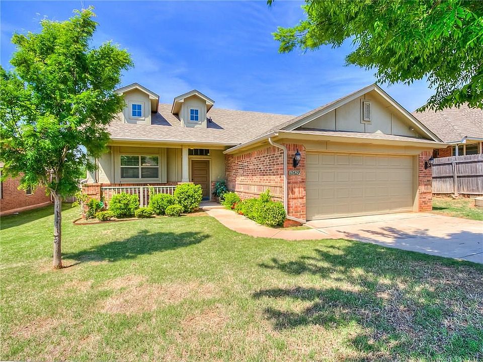 PREMIER LIVING in this Choctaw residence! Unwind in this craftsman bungalow. Sense of peace in the backyard. Private retreat backs to a disc golf course. Yard seems endless. The floor plan facilitates the everyday flow of life. 10 foot ceilings in main living and entry. Arched doorways, brushed nickel hardware, and neutral flooring and paint. Brand new carpet. Kitchen features stainless appliances, walk in pantry, and quartz counter tops. Expansive master suite with dual vanity, whirlpool tub, shower, and walk-in closet. Host family and friends from the comfortable covered porch or back patio. With its stylish finishes, attention to detail and distinctive craftsmanship, you will be proud to call this home your own! LOCATION: Close to Tinker, dining, and shopping. Neighbourhood has disc golf course, basketball court, and 2 stocked ponds. A wonderful place to rest your feet! Welcome HOME!