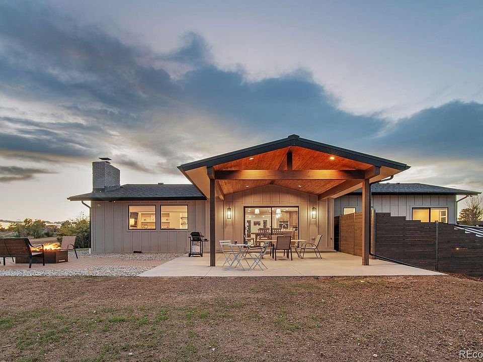 Welcome to this extraordinary, fully renovated multi-generational-living horse property, thoughtfully redesigned from the studs up by a Colorado custom homebuilder. With 6 bedrooms and 4 bathrooms, this home offers an expansive layout perfect for groups of all sizes or those seeking extra space with guest quarters. The open-concept floor plan, featuring stunning hardwood floors and soaring vaulted ceilings, creates a bright, welcoming atmosphere ideal for both everyday living and entertaining.