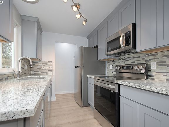 Newly remodeled, Inside and out new kitchen cab's, granite, undercount sink, all new stainless steel appliances, Newly remodeled Bathroom, vanity, granite and slate tile in shower, new lights and fixtures,new Milgard lifetime vinyl windows and slider, new lifetime vinyl flooring through-out siding and exterior. storage unit & patio in the back w/ slider perfect for BBQ. Dedicated parking space #125. Close proximity to Nike, hospital, Intel, shopping,transit microbrewiers & restaurants.