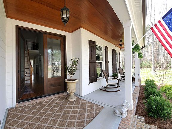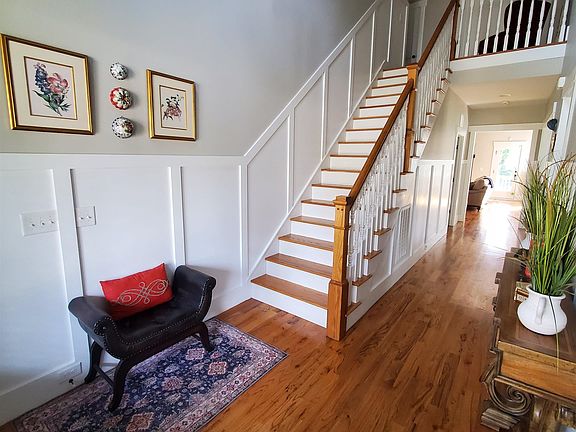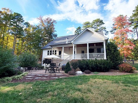 ABSOLUTELY CHARMING! This unique transitional farmhouse with high-end, custom finishes sits on over an acre of beautiful land. Meticulously maintained! Dream location...a country vibe yet minutes to amenities like Falls Lake State Park, Brier Creek shopping/restaurants and RDU Airport. Front and back porches allow for amazing outdoor living and entertaining. The fully-fenced back yard has a brick paved patio and wood-burning fire pit in a private setting that has been professionally landscaped. This home has gorgeous hardwood flooring as well as custom wainscoting and 10-foot ceilings throughout. Mudroom is right off the oversized two-car garage. The chef’s kitchen boasts marble countertops, HUGE marble island, white subway tile backsplash, high-end GE Café stainless appliances. Great room has wooden beams and a cozy gas log fireplace. PRIMARY SUITE AND SECOND BEDROOM ON LOWER LEVEL! Primary bath has double sinks, claw-foot tub and seamless glass shower. Sweeping staircase leads to the second level with 1 more bedroom, flexible room with closet, & full bath. Huge BONUS ROOM functions as gym, rec room, or office.