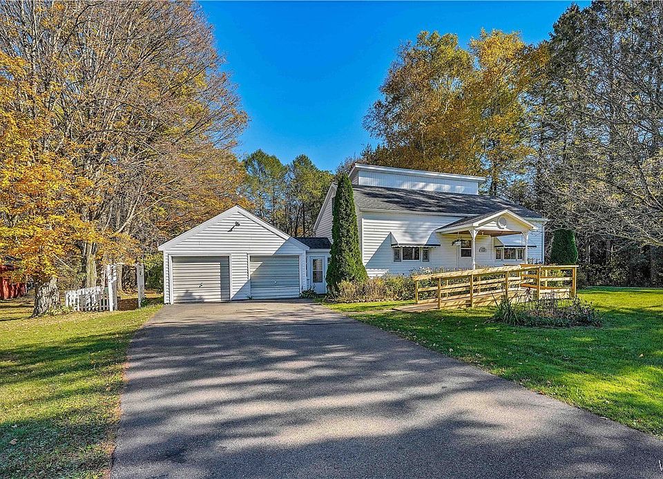 First time on the market! Discover the charm of this well-maintained three-bedroom, one-bathroom home nestled on 2.22 acres of picturesque, park-like grounds in Sardinia, NY. Pride of ownership shines through in every detail, from the low-maintenance vinyl siding to the thoughtfully cared-for features that make this property a true gem. Step inside to a spacious eat-in kitchen, complemented by a generous living room offering ample space for your favorite furniture arrangements. The first floor features tongue and groove wood flooring under the carpets as well as the bathroom and kitchen flooring. Convenience abounds with a first-floor bedroom and full bath, ideal for single-level living. An additional versatile room on the main level—separate from the three bedrooms—serves as a pass-through to the upstairs and could easily be used as a home office, gym, or extra bedroom. Upstairs, you'll find two bedrooms plus another flexible space that could be converted into an additional full bath, function as an office, or be used to expand the existing rooms. Outside invites outdoor enthusiasts with 13 pink blueberry bushes, mature apple trees, a red raspberry patch, and multiple vibrant flower gardens. A large, well-maintained barn with a durable metal roof offers endless possibilities for storage, workshops, or hobby farming, while an adjacent greenhouse is ready for your green thumb adventures. Practical upgrades include a full basement with updated electrical service, a two-car attached garage, a newly installed water filtration system, and a whole-home standby generator for uninterrupted peace of mind. Enjoy the benefits of low Sardinia taxes, all while being just a 10-minute drive to Springville and 25 minutes to East Aurora for easy access to shopping, dining, and amenities. Offers due 10.24.25 at noon.