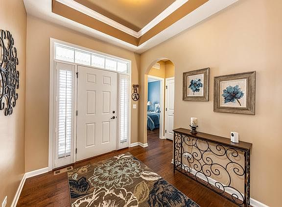 CUSTOM RANCH HOME IN PRESTIGIOUS STONEGATE WEST COMMUNITY! Open Concept and Move In Ready. Expanded Brentwood model on a premium lot with water views and finished basement. Three bedrooms with three full bathrooms and two car attached garage. Tons of storage. Stamped concrete patio/walls and lighting that overlook natural area and pond. Open concept home with high-end finishes, upgrades and vaulted ceilings. Hardwood Floors and Custom Plantation Shutters throughout home. Gorgeous kitchen with upgraded raised panel cabinetry, granite counter tops, tile back-splash, stainless steel appliances, island with seating and closet pantry. Family room includes custom stone fireplace with gas starter and logs. Expanded Master Bedroom with additional sitting room area. Master bedroom includes recessed tray ceiling, walk-in closet and ceiling fan. Luxury master bathroom has granite top vanity with double sinks, custom double shower with glass door and ceramic tile surround with built-in bench. Tons of natural light. The third bedroom with french doors could be used as an office with full closet. Finished basement has an exercise room with added wall of closets for additional storage. The recreation room has recessed lighting and full bathroom - great for parties or separate space for visiting families. Storage room has ample room for workbench/tools/workspace for tinkering. Garage with Epoxy floor. Laundry room includes washer/dryer with utility sink and plenty of room to hang clothes. Sprinkler system on expanded width lot (8 ft between homes vs 4 ft standard). Enjoy Stonegate West maintenance free living. Short walking distance to clubhouse, pool and trails. Immaculate condition. Stonegate West is an age targeted community not age restricted. Both TV's with Mounts Stay.