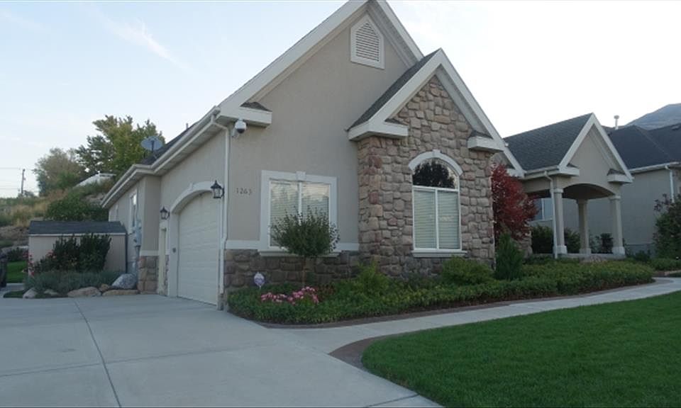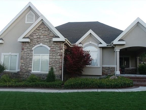 Built in 2000 as Temple Meadow's model home! 100% finished w/second kitchen downstairs! Professionally landscaped w/landscape curbing, beautiful rock terrace, fire pit w/stone pavers, covered deck from great room, additional private deck from master suite! Backs to grassed common area! This yard is immaculate! Wonderful hardwood entry, office from entry (could also be used as bedroom), Gorgeous living room w/archways & accent pillars! Spacious formal dining with tray ceiling & wonderful candled light fixture! Inviting great room w/fantastic open kitchen layout! Island w/seamless sink, Corian countertops, black appliances, Bosh dishwasher, large corner pantry, beautiful staggered hardwood cabinetry, hardwood flooring and more! Vaulted ceilings, gas fireplace w/charming wood mantel surrounded by built-in alcoves & cabinets. Entrance to deck & back yard from great room! Large master bedroom w/ large walk-in closet and french doors to private deck! Stunning master bath w/double vanity & lots of cabinetry, Corian countertops, large jetted tub, walk-in shower w/double shower heads & separate commode room. All bedrooms have large closets. Three bedrooms have walk-in closets. Huge family room/great room downstairs w/tray ceiling, full kitchen & dining! Two full bathrooms downstairs! This home is in one of American Fork's most desired neighborhoods! This home features professional landscaping! This home is picture perfect inside & out. This home is just waiting for you and your family!