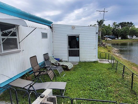 This 2 bedroom 1 bath partially furnished home has been well maintained and is move-in ready! Minor damage from the hurricane was to the sheds roof only; however, it has already been repaired. This home is very open with lots of cabinet space, 2 great working window units, roof has been cleaned and painted, laminate flooring throughout, double vanities in the bathroom, open kitchen with nook area, a working fireplace, a very large shed with the washer & dryer and additional storage. Lastly, this home has expansive lake views from the kitchen, living room and huge screen enclosed lanai so no one will ever be able to build behind you giving you complete privacy. This 55+ community is pet friendly and includes a clubhouse and library. This community is close to everything including shopping, restaurants and quick commutes to US-41 and I-75. Please call now for your showing as this one will not last!