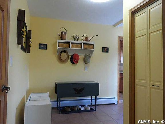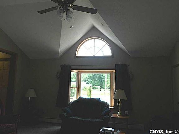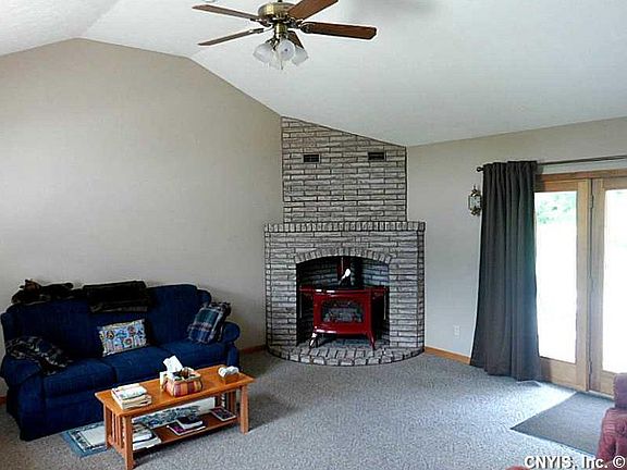 This house is fully updated and move in ready!! Beautiful custom kitchen with cherry cupboards and newer fixtures. New flooring and lighting throughout with ceiling fans in most rooms. Bonus room off kitchen could be addtl. living room, formal dining room, or extra bedroom. Large sunken family room has vaulted ceiling, bow window, brick fireplace surround, gas fireplace with fan, and french doors onto rear patio. Baseboard heat has 3 zones. Full basement could easily be finished for more space. Generous flat lot with landscaping and mature trees. Great rural location close to town and HS.