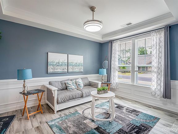Beautifully maintained ranch style home in Kings Grove. Widely covered front porch. Large foyer leads to open floor plan with natural light. Formal dining room can also be used as flex space. Large kitchen features plenty of white cabinetry, stainless steel appliances, and counter space. Kitchen island, dining area, and living room features lots of room for entertaining. Back door leads to the beautifully enclosed sunroom which features vinyl windows and screens (2021), extended patio (2021), and spacious backyard. Owners suite features french doors, dual closets, luxury bath with garden tub and separate shower, double sinks, and side door leading to the sunroom and backyard. 3 secondary bedrooms featured with nice size closets. Interior doors are 8ft with high ceilings in common areas. Ceiling fans throughout, updated fixtures, LVP/carpet updated in 2021, tile in 2022, paneling in foyer and living room completed in 2019 and 2021. Award winning Clover schools and low York County taxes.