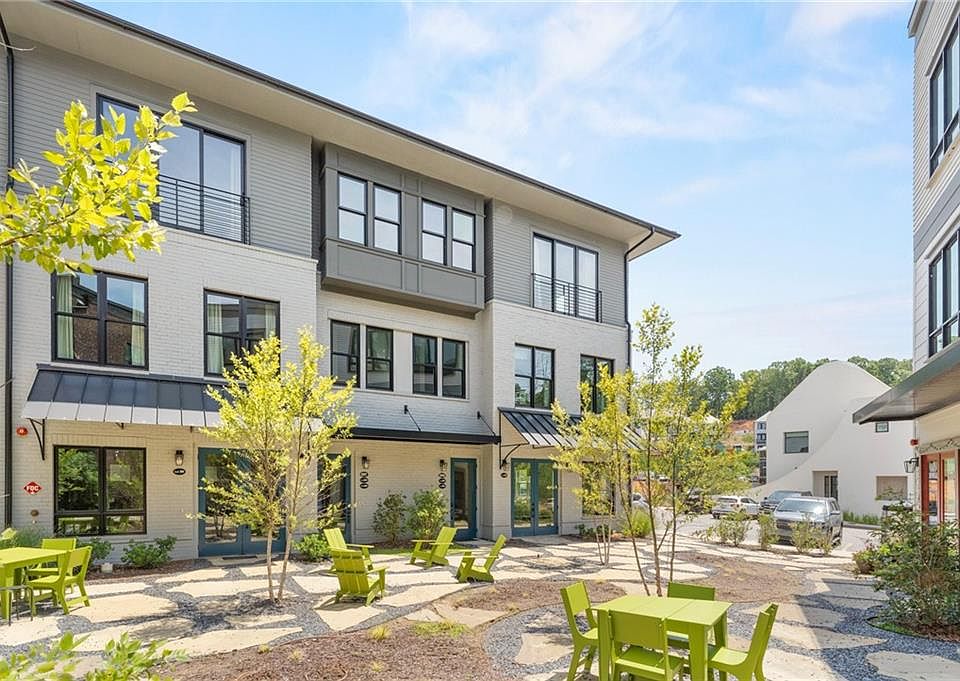 This modern live-work unit in the vibrant Mado Hamlet of Serenbe offers a unique blend of functionality and style. The ground-level commercial terrace space features a private bathroom, making it perfect for retail, office, or studio use. Upstairs, two beautifully designed residential units, each with 1 bedroom and 1 bath, boast open-concept layouts that seamlessly integrate living, dining, and kitchen areas. Large windows invite natural light throughout, creating airy and inviting spaces. This property offers an ideal opportunity to combine business with urban living in the heart of Serenbe’s wellness-focused community. Immediate access to over 20 miles of soft surfaced nature trails with protected forest views + enjoy being a stones throw away from boutiques, coffee shops, restaurants and more!