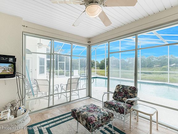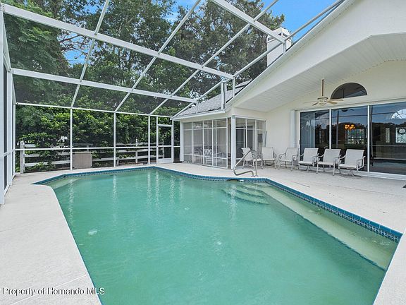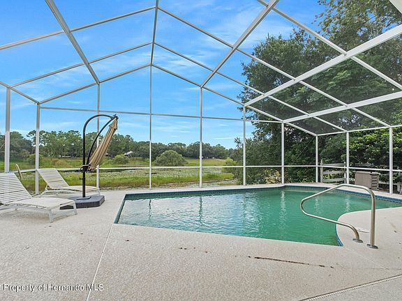 POOL HOME on DOUBLE LOT with POOL and DETACHED GARAGE on POND. 3+/2/2 + DETACHED GARAGE (30 x 24) on a tranquil pond with NO rear neighbors to look at or to look at you! 3 bedrooms + office that can be used as a 4th bedroom + 2 full bathrooms + fireplace + 2 enclosed lanais + one open lanai by the pool for entertaining. Large open floor plan with kitchen open to the great room. High ceilings! Corian countertops with breakfast nook. Formal dining room open to great room. Split floor plan for privacy for the master suite. Master is large with glass sliders to it's own lanai and access to the pool. Second bedroom has sliders to its own private lanai with jacuzzi (which conveys to buyer if buyer wants it). Second bath is a pool bath, as well. The attached garage was built outside with half of it having AC/HEAT for extra living space not included in the sq ft living on MLS or in public records; it can easily be converted back. Detached garage is connected with a sidewalk and is extra deep at 30 feet deep. Roof 2011. AC 2016. NO HOA. NO flood insurance required. Some things you cannot add to an existing home...you have to buy one that is blessed with it...which is the location that offer you the privacy to enjoy your pool time with views that extend over the pond instead of looking into a neighbors backyard. A little paint and new flooring and this own can be made into your perfect home! Close to everything - groceries, shopping, restaurants, 10 minutes to the Suncoast Parkway. 45 minutes to Tampa International Airport and to Tampa for work and play! 1 hour+ to 2 of the TOP US BEACHES. 20 minutes to Pine Island for sunsets! 15 Minutes to Sun West Mines Freshwater Beach and 15 minutes to Weeki Wachee State Park with the live mermaid show and Buccaneer Bay Water Park or kayaking down the crystal clear Weeki Wachee River. Come see it today!