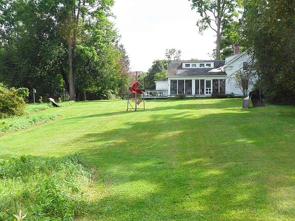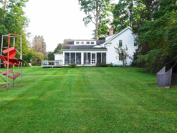 Built in 1840 this colonial is located on the south bank of the Walloomsac River just through the covered bridge on Murphy Road. Charming three-bedroom three bath home sited on 4.52 acres bordering the Walloomsac River. The large country kitchen is light filled. A bathroom and washer and dryer offer easy access off the kitchen. A formal dining room and living room with a wood burning fireplace and a den/ music room that overlooks the meadows and river. A bedroom with a bath completes the first floor. Second floor consists of three ample bedrooms and a full bath and office. The home boasts beautiful millwork and wide pine floors. A 30 x 14 screened in porch with access from the dining room enhances the home. A large barn shed and carport offer easy access from the home.