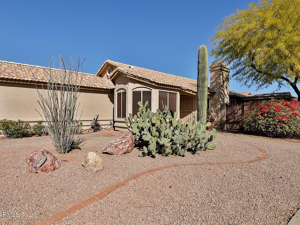 Stunning home in Chandler. Great location w/bike & walking trails. Walk into a large great room w/beautiful brick fireplace & a sliding glass door leading to the lovely back patio. A separate dining area is off the kitchen w/bay window w /5 large windows w/shutters. The large kitchen has lots of storage in the oak cabinets. The granite counters look attractive w/stainless-steel appliances. Off the kitchen is a small area for the washer & dryer which comes with the house. The hall bathroom has a beautiful oak & wrought iron mirror above the oak vanity. The spacious main bath has a large double sink vanity, a large tub & large shower w/ glass door & attractive decorative tile. The main bedroom has a sliding glass door out to the patio where you can enjoy the landscape of trees and plants.