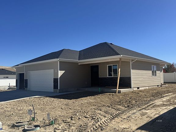 Welcome to Cedar Estates Subdivision! Presenting The Peyton model, this delightful 3-bedroom, 2-bathroom home features a spacious 3-car garage, perfect for comfortable living. As you enter, you'll be greeted by a bright, open-concept layout that seamlessly blends the living, dining, and kitchen areas-ideal for entertaining or just relaxing at home. Enjoy the modern finishes with beautiful LVP flooring and cozy carpets in the bedrooms, ensuring a warm and inviting atmosphere. The gourmet kitchen includes top-of-the-line appliances, elegant granite countertops, and stylish cabinet choices to suit your taste. The master suite offers en-suite bathroom complete with a contemporary tiled shower and a sleek fiberglass base for a touch of luxury. Additional conveniences include maintenance-free vinyl siding and energy-efficient gas heating and water systems for optimal performance. Plus, you'll receive a sprinkler tap off the main waterline making landscaping install much easier. Complete your front yard landscaping within six months of closing and benefit from a 2K landscaping credit. Don't miss this opportunity to make this house your home!