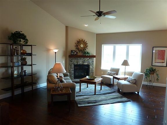 Spectacular ranch home with soaring ceilings, wood floors most of the main level. Stunning kitchen has maple cabinets, granite tops, walk in pantry all open to great room with fireplace. French doors accent the vestibule. Large laundry room & mud room with lockers & closet. Owner's suite has tray ceiling, tile shower, double vanity & walk-in closet. Painted trim, 4 panel doors, oversized 3 car garage.Exposed lower level with family room, fireplace, guest suite & bath.