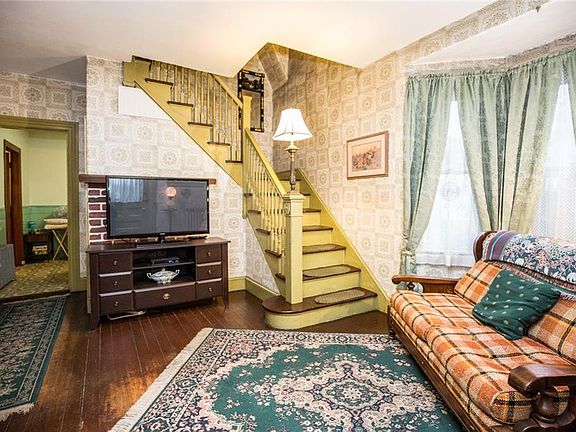 DEBUT! Classic 1900s Gambrel Colonial takes you back in time as you enter the spacious entry foyer! Original details, stain glass windows, high ceilings, and side-split staircase anchor the period charm of this unique abode. Graphic wallpaper adorns generous sized rooms throughout this solid built home. Located on a corner lot & includes a 16 X 20 detached building with unlimited potential. Come check out this 'hipster-chic' Retro Gem!