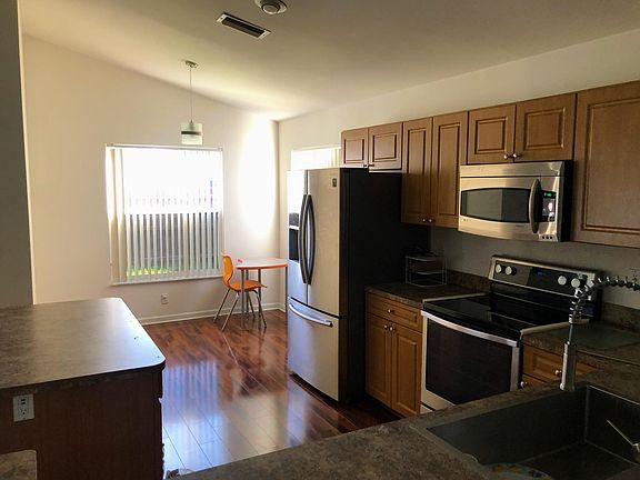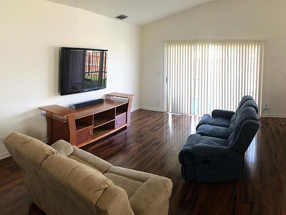 Beautifully updated, well-maintained, 3 bedroom, 2 bath, 2 car garage home with a screened-in patio and fenced in backyard. Open floor plan with Brazilian Koa laminate flooring throughout. Large master bedroom with his / her walk-in closets. Vaulted ceilings and spacious living / dining area and kitchen with an island and plenty of cabinet space. Stainless steel appliances: refrigerator, microwave, oven, and dishwasher, as well as a kitchenette area. Spa- like bathrooms newly remodeled. Automated sprinklers and security camera out front. Close to polo grounds and equestrian center. Walk to Wellington Amphitheater and Publix. Seasonal rental an option. Non smoking. Yearly lease. Seasonal lease available