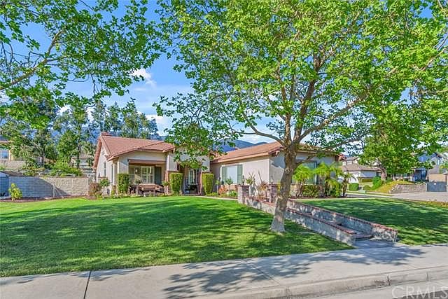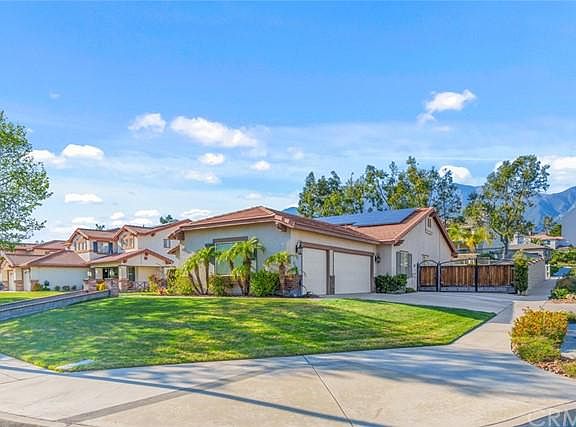 Welcome to 12630 E. Arena Ct! A stunning single story located in the highly coveted Rancho Etiwanda Estates just hit the market! Can you say curb appeal? Located on a corner lot, beautifully landscaped, mature trees, brick lined walkways, welcoming porch, driveway, and a three car garage. Upon entry, you are greeted with vaulted ceilings, recessed lighting, custom shutters (throughout the entire home) and a spacious office or bonus room right off the front entry. The formal dining and living room have tons of natural light. Gorgeous upgraded kitchen with custom cabinets, granite countertops, stainless steel appliances, subway tile backsplash, rolling shelves and a cozy kitchen nook with a stunning view to the beautiful backyard. Step out into the backyard oasis with a waterfall, full size fireplace, string lighting, Aluma-wood cover and even a hammock for relaxing in your paradise. There is tons of room to entertain and relax! Enjoy the professional landscaping and raised vegetable garden boxes. A gated 30 x 12 RV parking area completes the outdoor space. Right off the kitchen is the family room with vaulted ceiling, a gorgeous gas fireplace, an upgraded dry bar and wine fridge. The large master bedroom has a recently upgraded bathroom with a soaker tub and shower. The spacious master closet includes built-in shelves, racks and drawers. Low taxes and LOW HOA! The HOA includes two private parks, tennis court, basketball courts, playgrounds and a full equestrian center. Located in the award-winning Etiwanda School District and is zoned for John L. Golden, Day Creek Intermediate and Los Osos High School. Buyer to assume or payoff solar panel lease. Buyer to assume or payoff Solar Panels.