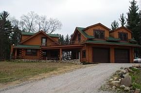 Beautiful, secluded, unique custom-built log home with garage and outbuildings on 35 partly wooded acres, West Twp., Marshall County.